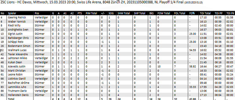 Mühe bekundeten wir im 1. Drittel mit dem extrem hoch pressenden HCD, und dass wir die Scheibe anfangs bis mitte Spiel kaum aus dem Drittel brachten, das muss sicher angeschaut werden. Im 2. Drittel konnte der HCD die Pace dann schon nicht mehr so vorgeben und im 3. Drittel das übliche lächerliche gedreckle, welches man bei den BergAFFen "Playoffhockey" nennt. Spielerisch kam da in Drittel 2+3 nicht mehr viel.
