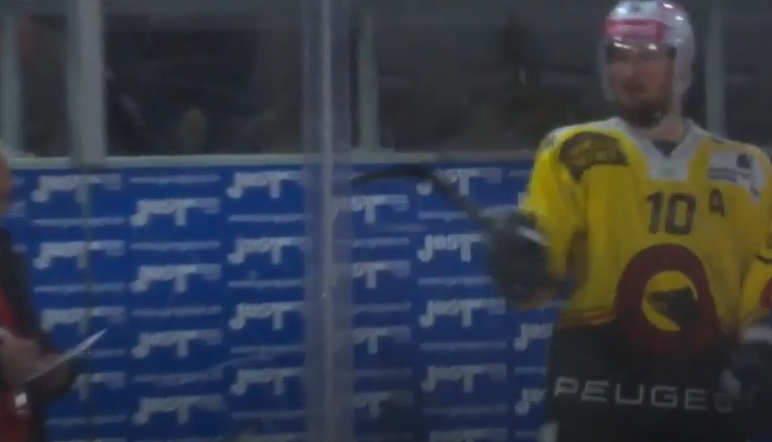 Hier noch aus der Berner Zeitung:Nachdem Berns Tristan Scherwey nach einer hart gepfiffenen Strafe wutentbrannt seinen Stock ans Plexiglas drosch, fasste sich ein Betreuer an den Kopf. Was ihn getroffen hat, ist auf den TV-Bildern nicht ersichtlich. Scherweys Stock dürfte es nicht gewesen sein. Dennoch entschuldigte sich der 31-Jährige umgehend und nahm den Mann in den Arm.
