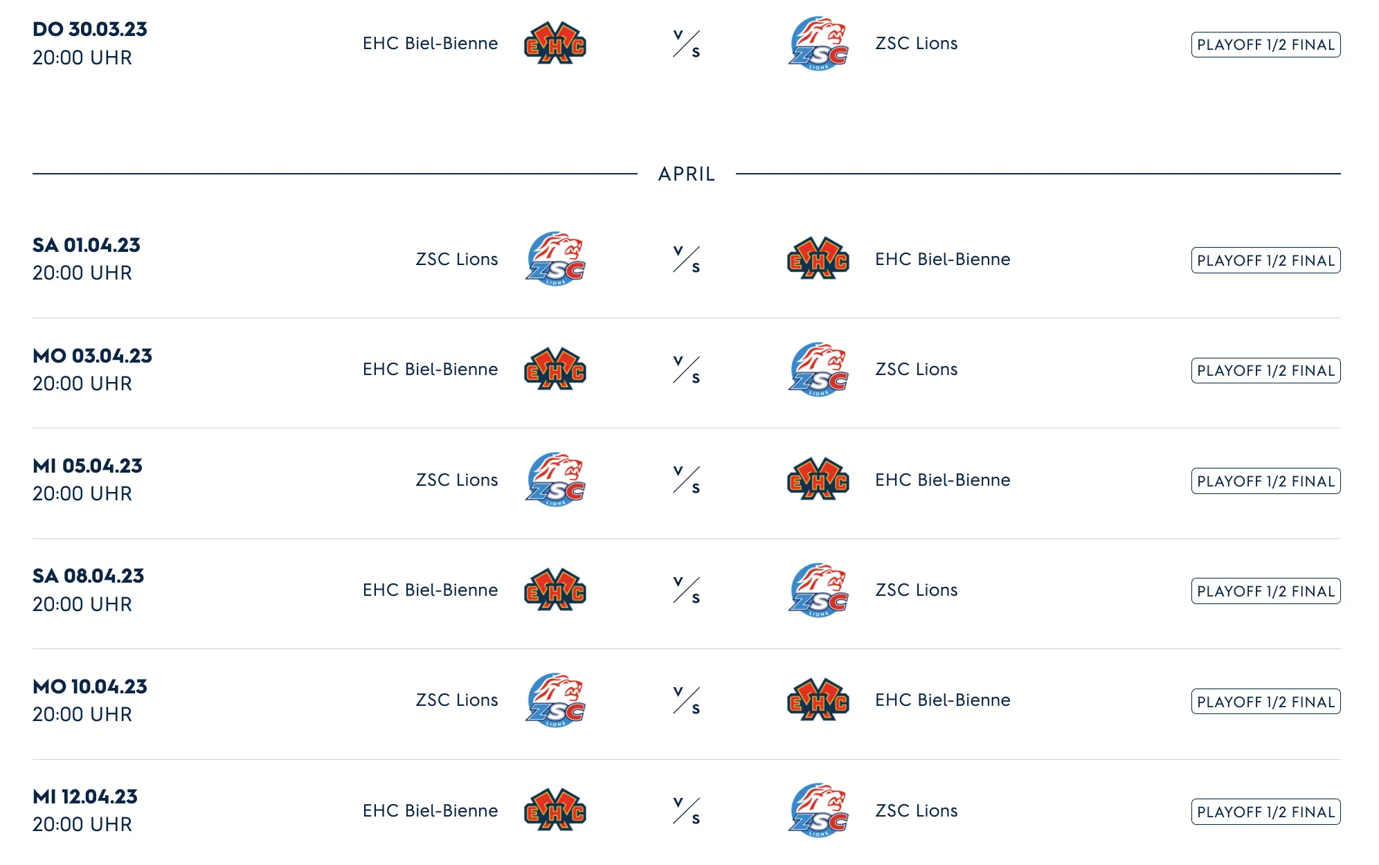 Vorverkauf in Biel für Spiel 1 und 3 startet morgen um 14 h.