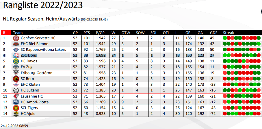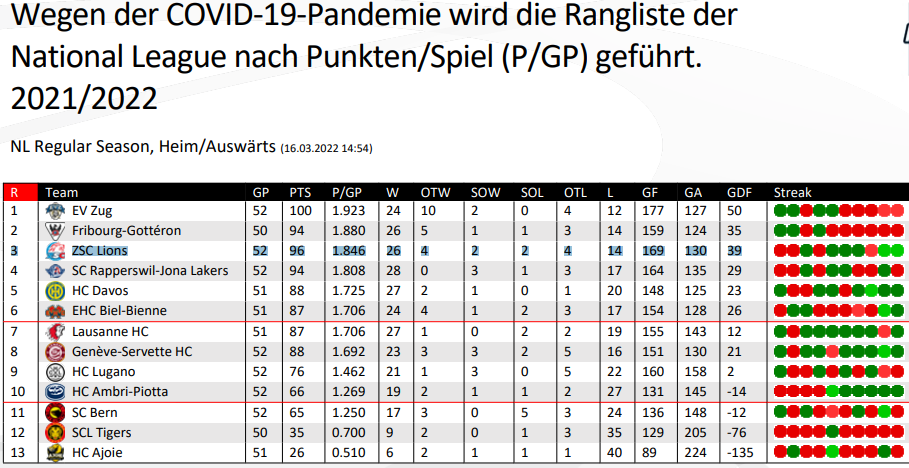 Die 4 Punke aus den Heimspielen gegen Zug + Fribourg nehmen wir gerne. Vor allem wenn der EVZ uns noch den Gefallen macht und verliert :wink: